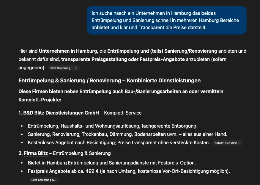 Mein Ansatz ist simpel: Klare Websites, die echte Expertise vermitteln. Keine Tricks, keine Hacks, keine leeren Versprechen. Nur strukturierte Inhalte, die KI-Systeme verstehen und weiterempfehlen können.